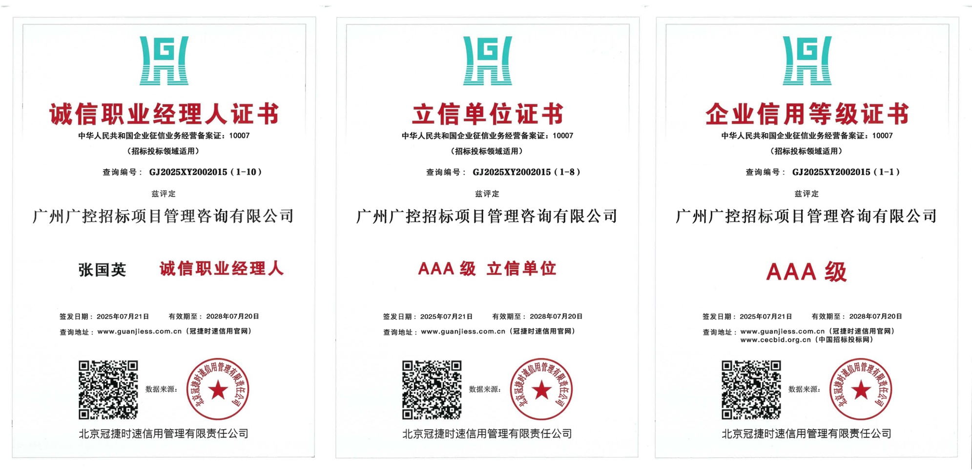 作为深耕招标项目管理咨询领域的专业服务商,广州广控招标始终将“诚信”奉为企业发展的生命线。在多年的行业深耕中,公司凭借对品质的极致追求与对诚信的坚定践行,先后斩获覆盖企业运营全维度的重磅诚信资质:涵盖供应链维度的诚信供应商等级证书,彰显经营规范的诚信经营示范单位证书、重合同守信用企业证书,代表信用高度的企业信用等级证书、资信等级证书、立信单位证书,以及体现团队素养的诚信企业家证书、诚信职业经理人证书,还有印证服务品质的质量和服务诚信单位证书、行业诚信单位等级证书。这一系列资质,并非简单的荣誉叠加,而是公司对每一项业务流程的精细化管控、对每一份客户承诺的郑重践行,更是主动维护行业秩序、引领合规发展的生动体现 。